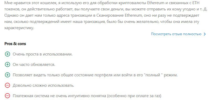 MyCrypto известен давно, у него большая база пользователей. Отзывов в интернете много, почти все положительные. В некоторых из них упоминается относительная сложность кошелька для новичков и запутанный интерфейс.