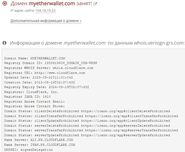 По рассказам админов, его обновление в апреле 2023 позволило «вывести размещенные ETH», но откуда именно — не уточняется. Нет сомнений, что речь идет не о кошельке Myetherwallet — закинутые сюда депозиты обычно исчезают на заокеанских счетах жуликов.