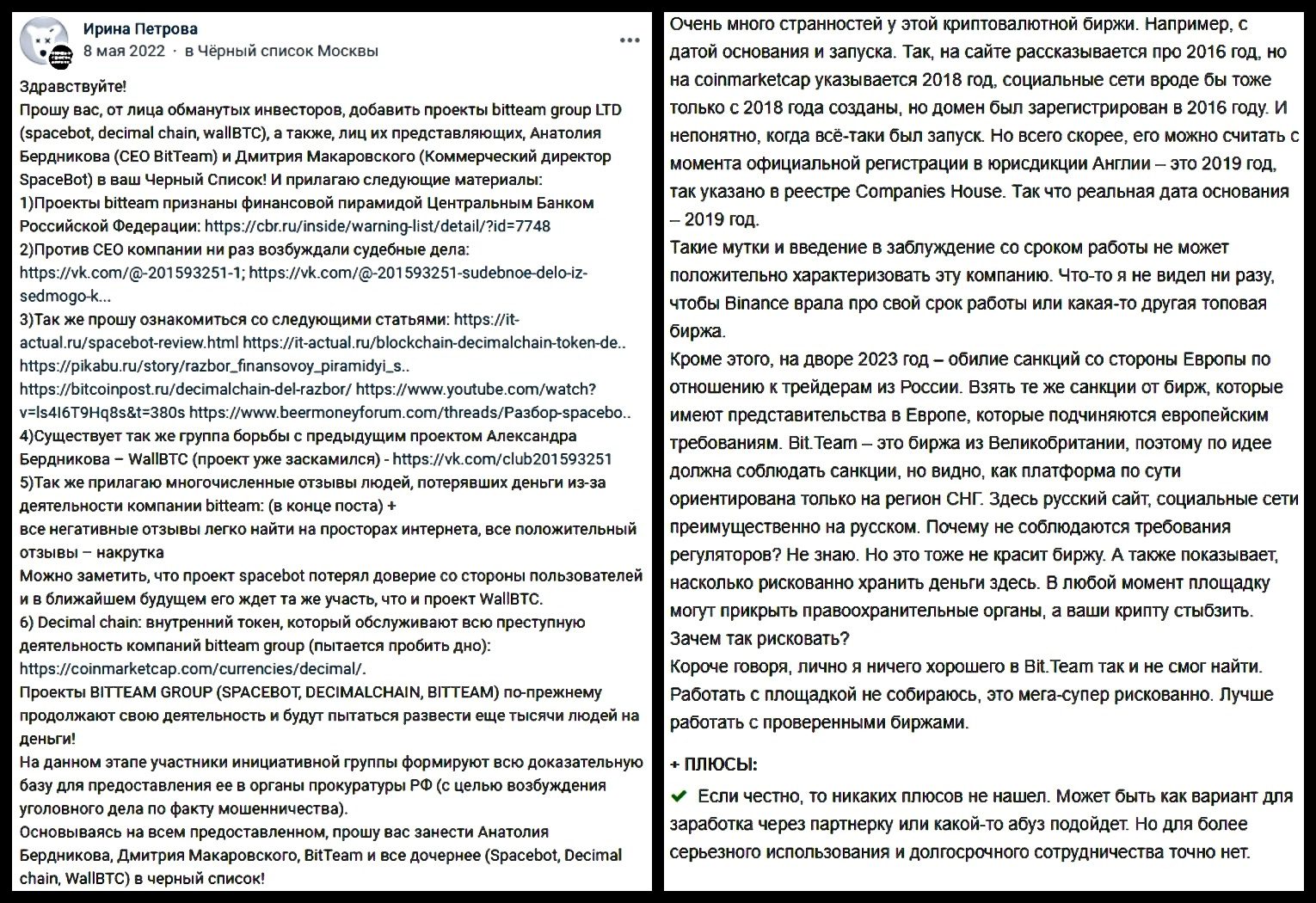 Странно, но при массе гневных отзывов о Бит Тим Р2Р, куче нестыковок и явно мошенническом характере активности в бан-листе ЦБ РФ представлен лишь SpaceBot, а остальные проекты семейства действуют открыто. Вседозволенность порождает безнаказанность, чем и пользуются Бердников и подельники, а лучшее решение при встрече с ними — отказ от пользования любыми услугами Bit Team 2P2.