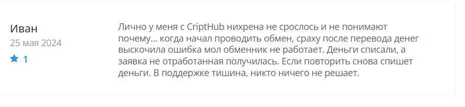 Отзывы об обменнике CriptHub