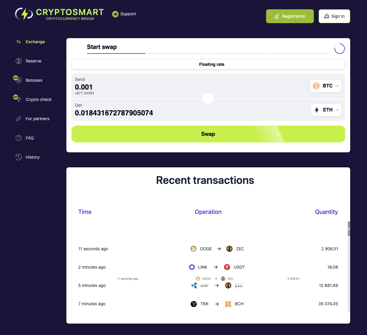 Crypto Smart Online – онлайн-обменник, мост. На сайте заявлено, что он заработал в 2022-м году. Однако это опровергается данными, которые были обнаружены в процессе проверки проекта.