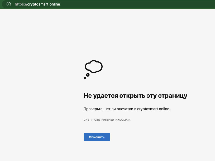 домен зарегистрирован лишь в феврале 2024. Полгода работы, и сайт внезапно перестал открываться, без объяснений и предупреждений. Так ведут себя не серьезные сервисы. Крипто смарт был мошенническим проектом, созданным для сбора криптовалюты доверчивых пользователей. Его внезапное исчезновение закономерный финал таких схем.
