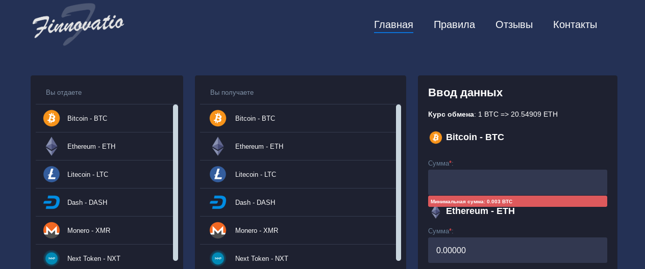 Finnovatio com: отзывы, обзор обменника, как пользоваться, риски и репутация