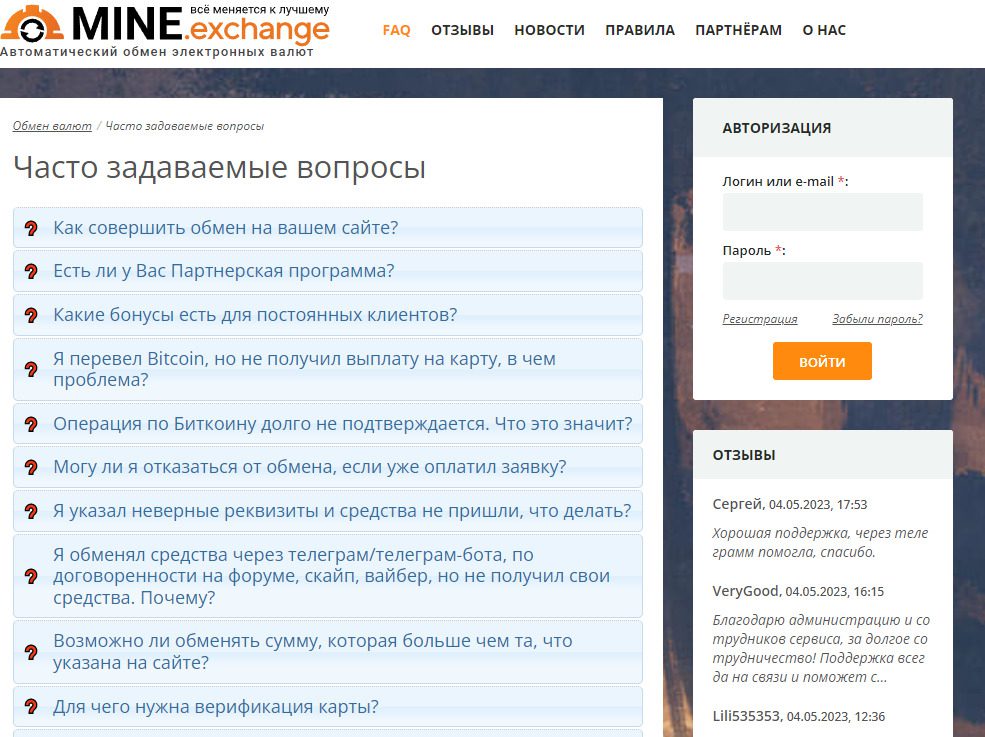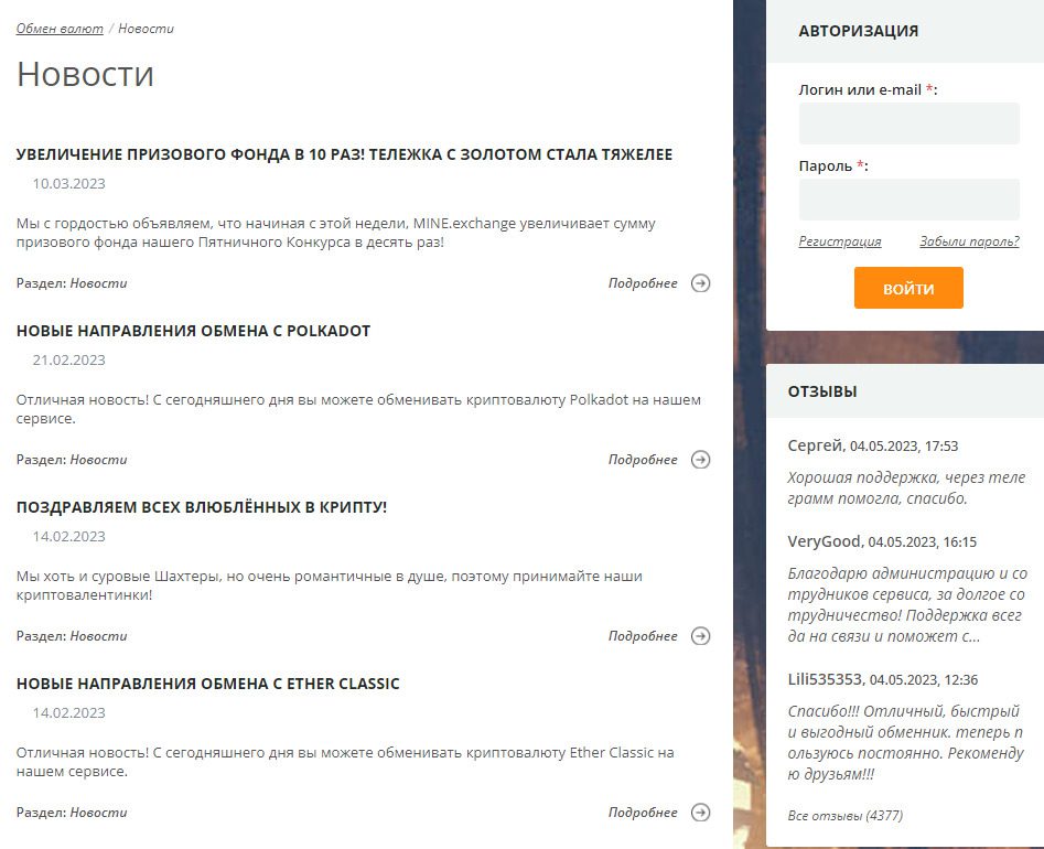 Mine Exchange – отзывы, проверка условий обменника