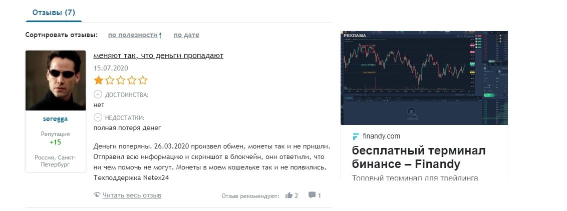 Netex24 – отзывы клиентов обменник