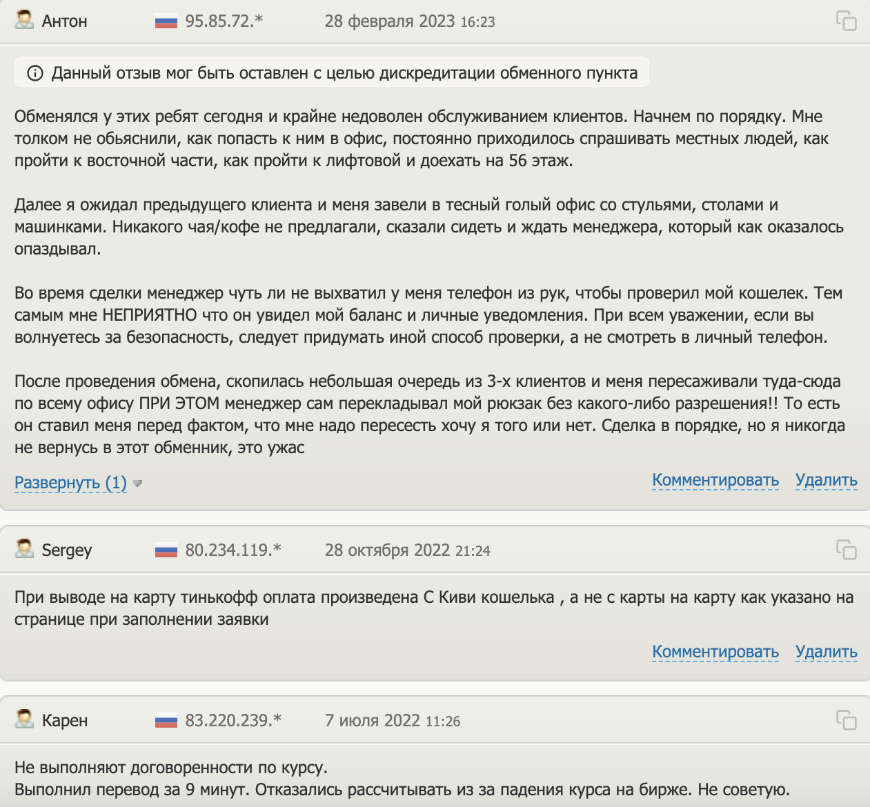 - Плохое обслуживание, из-за него многие люди не стали бы пользоваться обменником повторно.