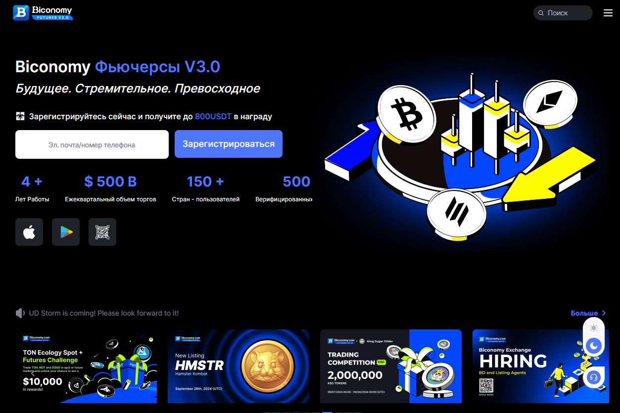 Biconomy (Бикономи) — централизованная криптобиржа, зарегистрированная в 2019 году. Основатель — Дмитрий Шелудько. По информации с Coingecko Бикономи имеет рейтинг доверия 8 из 10. На осень 2024 года на платформе 220+ пар для обмена, 200+ монет, а средний объем торгов за сутки — более $650 млн.