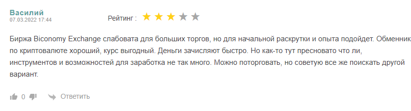 Бикономи — понятная, удобная, продуманная платформа для криптотрейдеров. Есть замечания насчет работы ее службы поддержки и проблемы с выводом средств. Но аналогичные неприятные ситуации встречаются буквально на любой платформе.