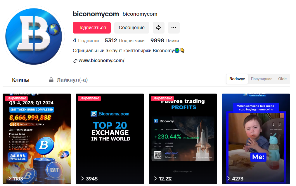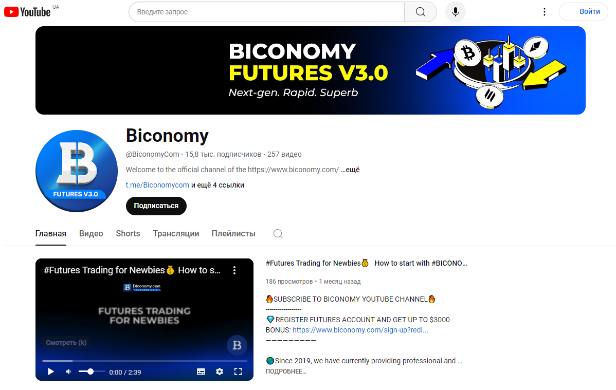 На YouTube канал Biconomy создан в 2021 году. Здесь 15+ тысяч подписчиков, почти 300, но всего около 90 тысяч просмотров. Ролики не имеют комментариев (почти, если быть справедливым), лайков, зато переполнены ссылками на другие проекты биржи в других социальных сетях.