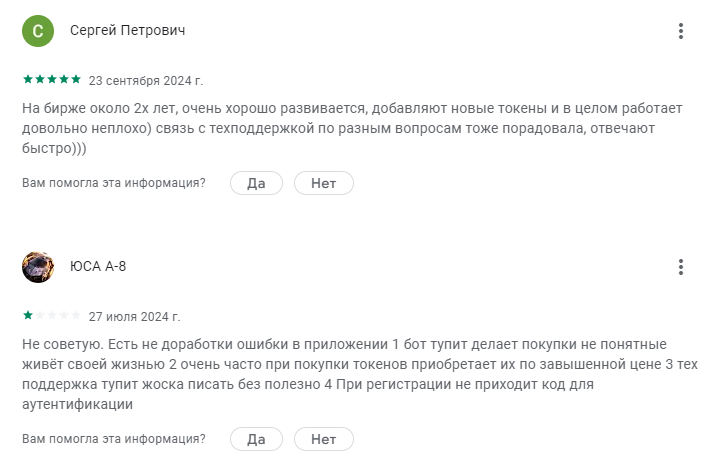 Если проанализировать отзывы о проекте на независимых площадках, они будут положительные/негативные в соотношении примерно 75% на 25%. Да, биржа проста, понятна и нравится новичкам. Но более опытные криптотерйдеры рекомендуют выбирать для больших торгов другие платформы.