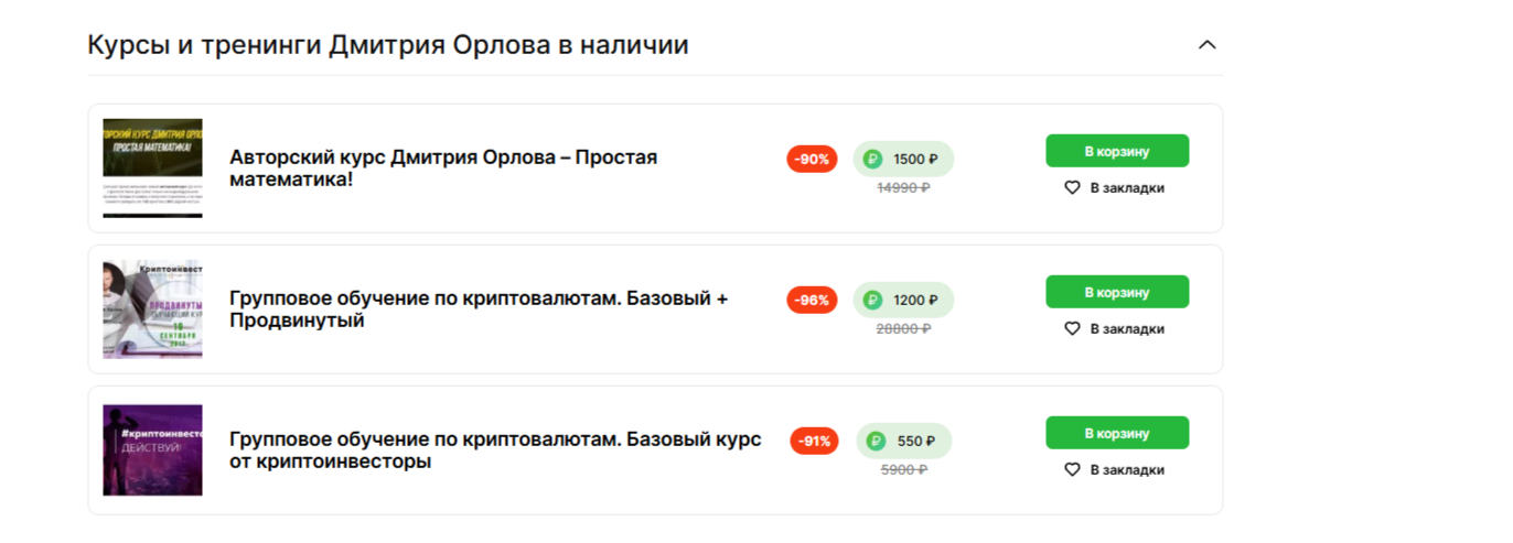 На данный момент доступно только три курса от Дмитрия Орлова: