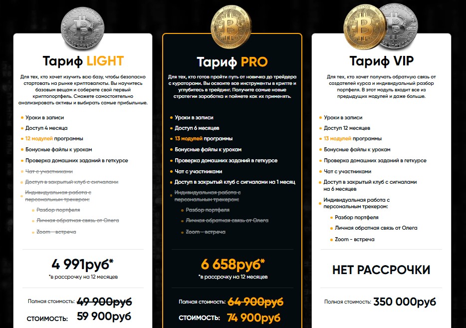 Что касается курса «Криптокапитал 8.0», то он доступен в трех тарифных планах:
