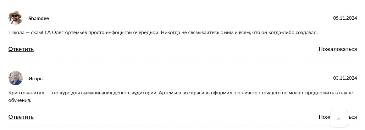 Отзывы о «Крипто Старт» Олега Артемьева в сети оказались противоречивыми. Многие считают, что обучение не стоит заявленных денег. Вся информация базовая и известна большинству даже начинающих трейдеров.
