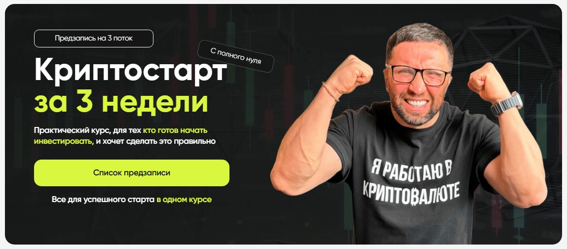 Курс «Крипто Старт» Олега Артемьева на март 2025 более не актуален. Вместо него предлагают записаться на третий поток обучения «Криптостарт за 3 недели». На сайте указано, что программа создана в 2024 и содержит актуальные знания. Причем она подойдет как для новичков, так и для инвесторов, которые из-за отсутствия навыков уже понесли убытки. Узнать стоимость и способы оплаты можно только после оформления предзаписи.