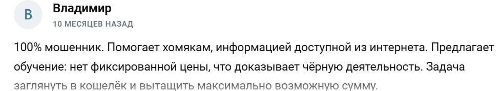 Отрицательные комментарии сообщают о том, что автор просто использует информацию из интернета в своем обучении с целью залезть в кошелек клиентов.