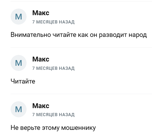 Сообщают, что автор обманывает людей и призывают не доверять трейдеру.