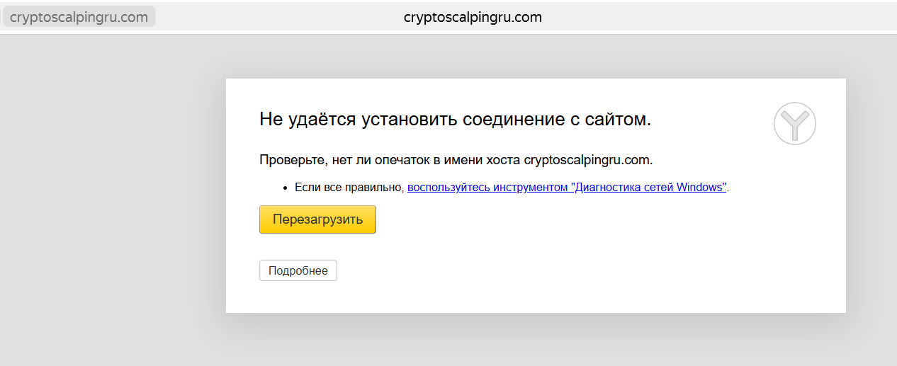 Автор проекта предлагает нам купить курсы на его официальном сайте CryptoScalping ru, который на 20 марта 2025 года оказался недоступен.Использовав специальный сервис WhoIs выяснилось, что домен свободен.