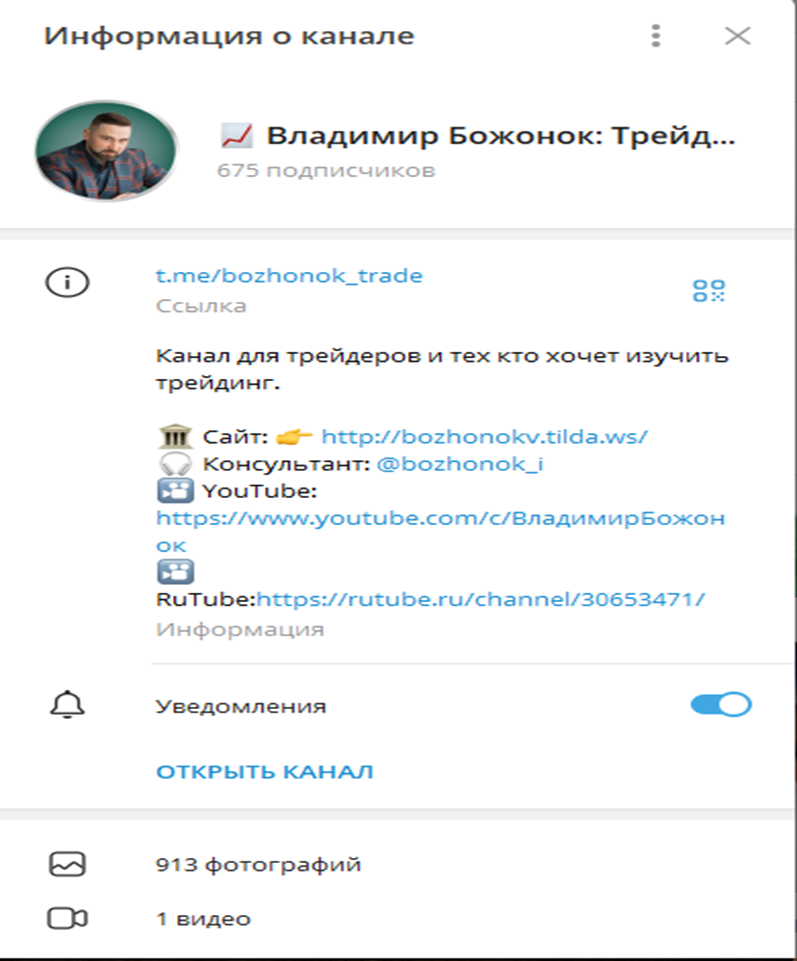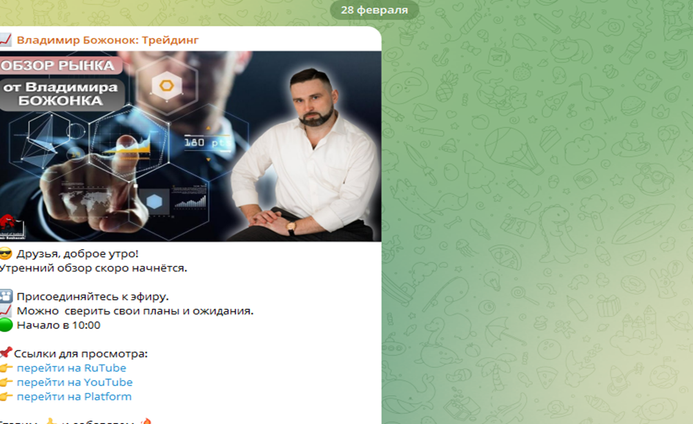Обзор телеграмм-канала трейдера Владимира Божонка