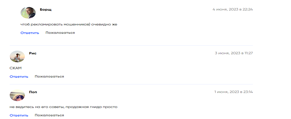 В ходе обзора деятельности Владимира Божонка мы решили поискать независимое мнение, поэтому обратились к сторонним ресурсам и специализированным форумам. Реальных отзывов оказалось немного, вероятно это связано с низкой узнаваемостью самого трейдера и его образовательного проекта. Тем не менее, среди найденных комментариев мы не нашли ни одного положительного высказывания. В основном пользователи обвиняют трейдера в мошенничестве.