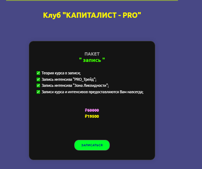 - «капиталист про» – расширенный вариант, включающий дополнительные материалы. Цена: 19 500 рублей;