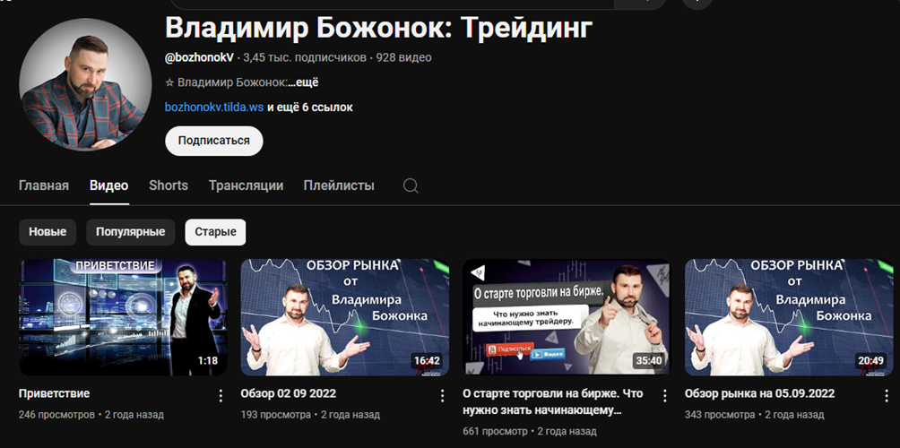 Обзор ютуб-канала трейдера Владимира Божонка