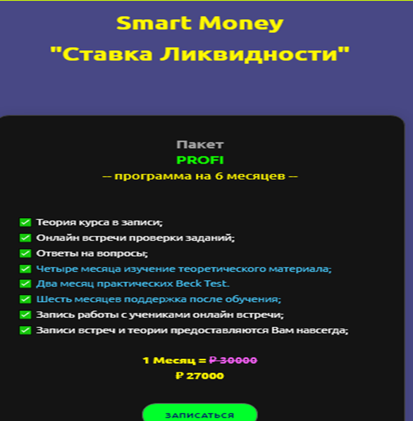 - «профи» – комплексное обучение на 6 месяцев с доступом к онлайн-встречам, обратной связью и поддержкой после окончания курса. Цена: 27 000 рублей в месяц.