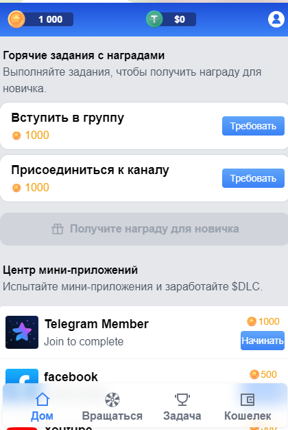 В отзывах о Dlcoin bot пользователи часто обсуждают принципы игры и возможности получения монет. Здесь все просто — достаточно перейти в DLCoinBot и нажать на кнопку Старта. На следующем шаге появляется предложение вступить в группу или присоединиться к каналу за определенное вознаграждение. Имеются также другие задания, с помощью которых можно заработать в Длкоин боте.