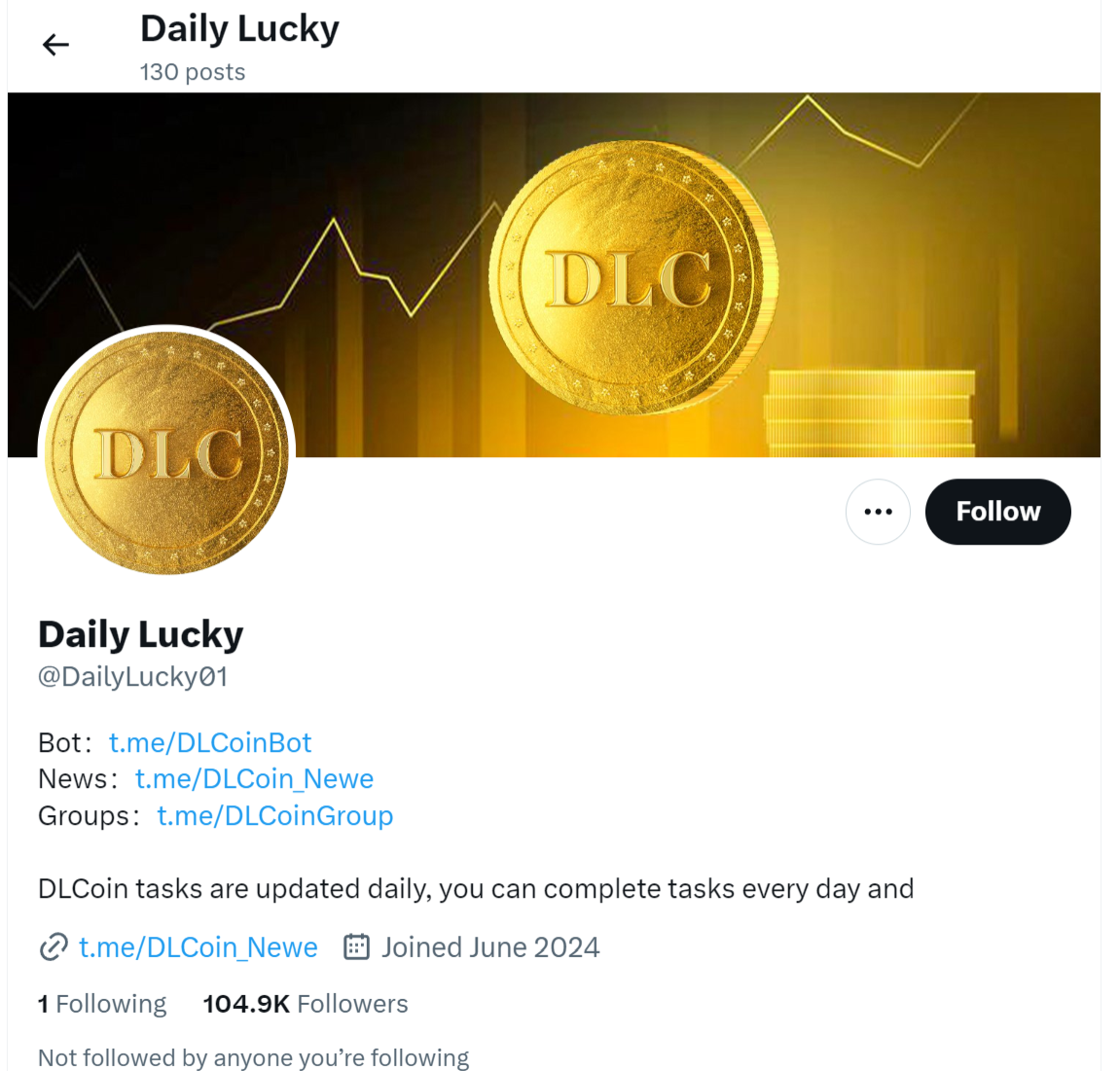 Еще одно сообщество работает в Твиттере и называется Daily Lucky. После перехода по ссылке можно увидеть, что к DailyLucky01 подписано около 104 тыс. человек. Публикации добавляются каждую неделю и зачастую дублируются с информацией в Telegram.