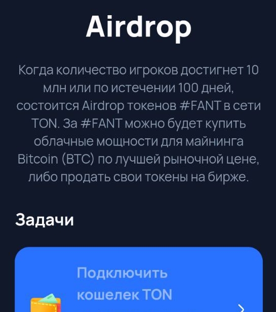 В разделе Airdrop есть опция подключить кошелёк TON, однако пока у монеты FANT ещё не было аирдропа, то и выводить участникам ещё нечего.