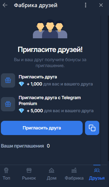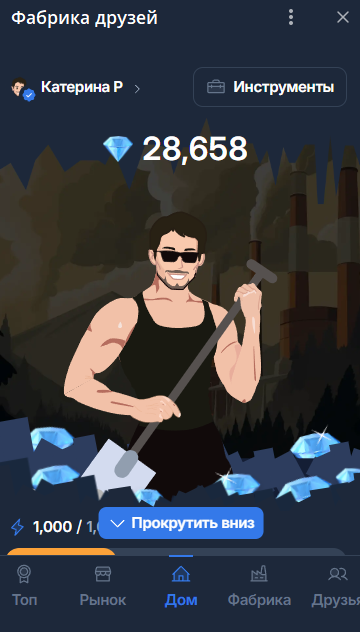 Фабрика Друзей – это игра-кликер, которая работает в Телеграме. Ее основной персонаж мужчина, который добывает алмазы. Основная его особенность – права на игру принадлежат Павлу Дурову. Главный персонаж даже похож на него. Благодаря интеграции с TON, игроки могут зарабатывать токены. Читайте дальше наш обзор, чтобы узнать, как играть в Фабрику Друзей, а также о том, как собрать максимальное количество бустеров.