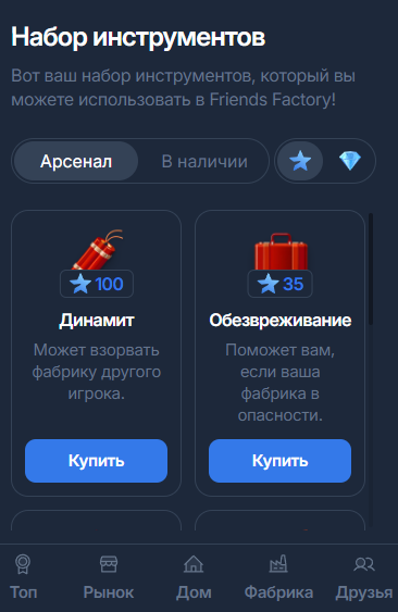 В игре Фабрика Друзей игрокам доступны различные бустеры, которые можно приобрести через вкладку Инструменты в разделе Дом. Эти бустеры предоставляют значительные преимущества для управления фабрикой и взаимодействия с другими игроками: