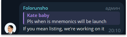 Для того, чтобы быть в курсе последних новостей о проекте достаточно телеграмм-канала Mnemonics Announcement, быстрее чем там, информация не появится нигде: крупные инсайдеры не берутся за подобные небольшие проекты. Обсудить эти новости можно в двух MnemonicsChats в том же мессенджере – Mnemonics Chat1 и Mnemonics Chat2 соответственно.