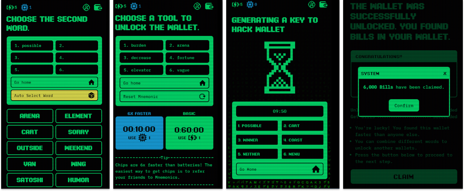 Mnemonics телеграм-кликер, позиционирующийся как революционер в криптосфере. Идея игры в том, чтобы взламывать кошельки с помощью потерянных мнемонических фраз, перераспределяя токены в сообществе. На деле это лишь игровая концепция, что отличает Mnemonics от сотни одинаковых тапалок в Telegram.