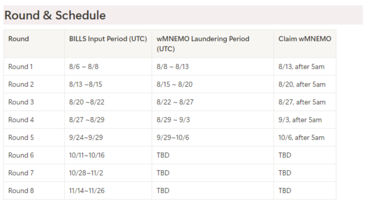 Несмотря на завершившуюся раздачу, заработать немало токенов MNEMO можно и чисто игровым путем. Для этого каждую неделю организуется “стирка” – так в игре называют отмывание bills со взломанных кошельков: по определенному механизму взамен bills вы получаете предстоящую криптовалюту.