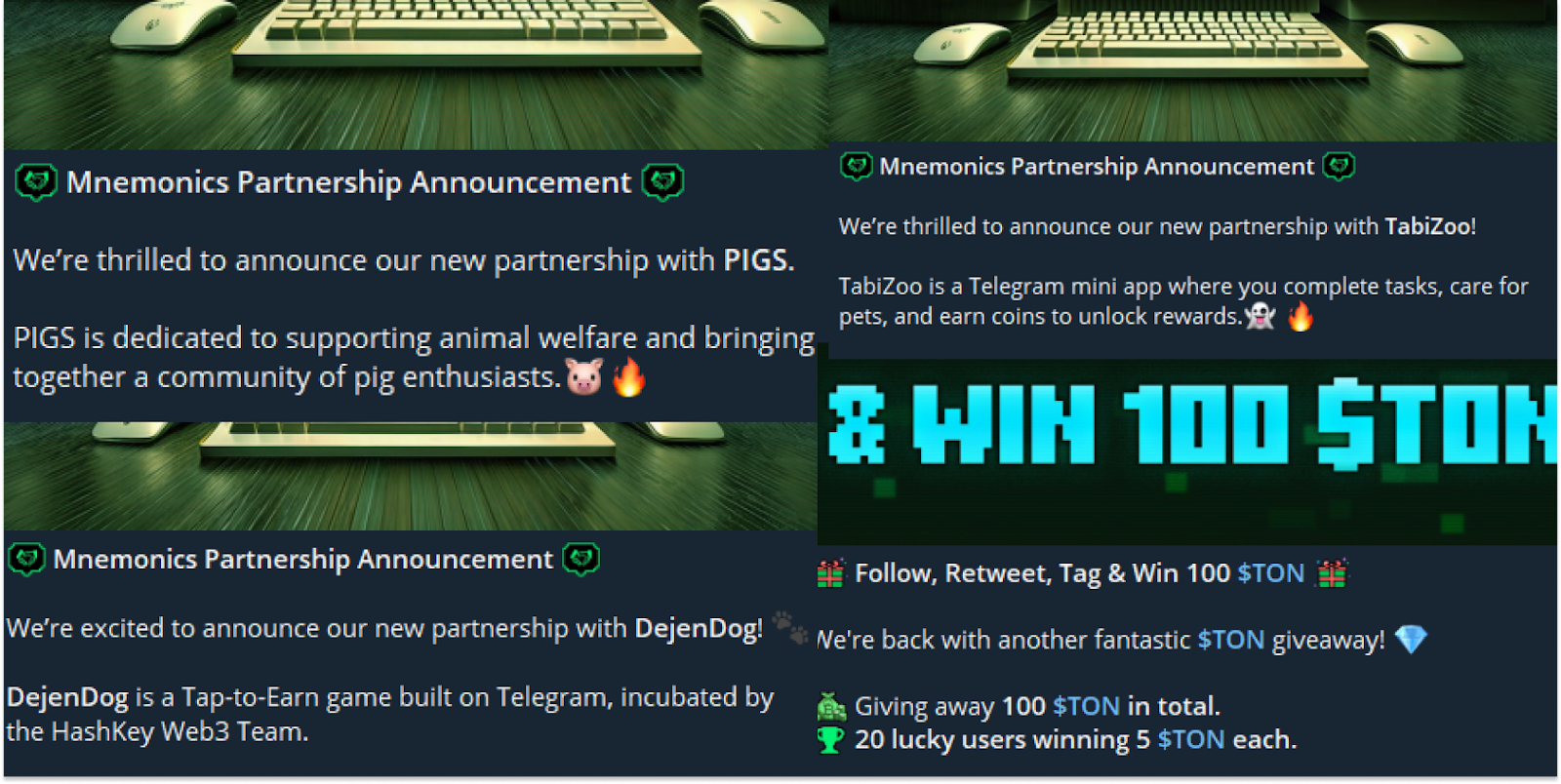 Трендом последнего месяца стали новые партнерства: mnemonicsann старается заключить их как можно больше, хотя в отзывах игроки пишут, что предпочитают видеть листинг, а не “очередную тапалку”. Чаще всего сотрудничают с проектом равные по популярности проекты с 2-4 миллионами активных пользователей.