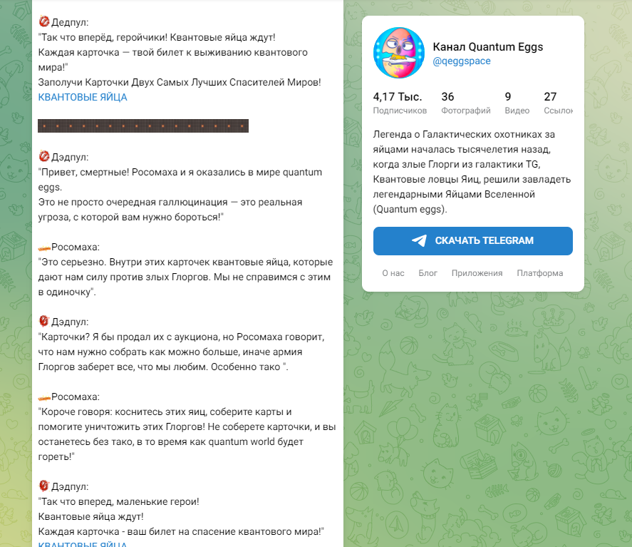 Quantum Eggs сейчас выглядит заброшенным. Бот не работает, платформа недоступна, а последние публикации на канале датируются концом августа. Все это создает впечатление того, что разработчики просто оставили продвижение проекта.