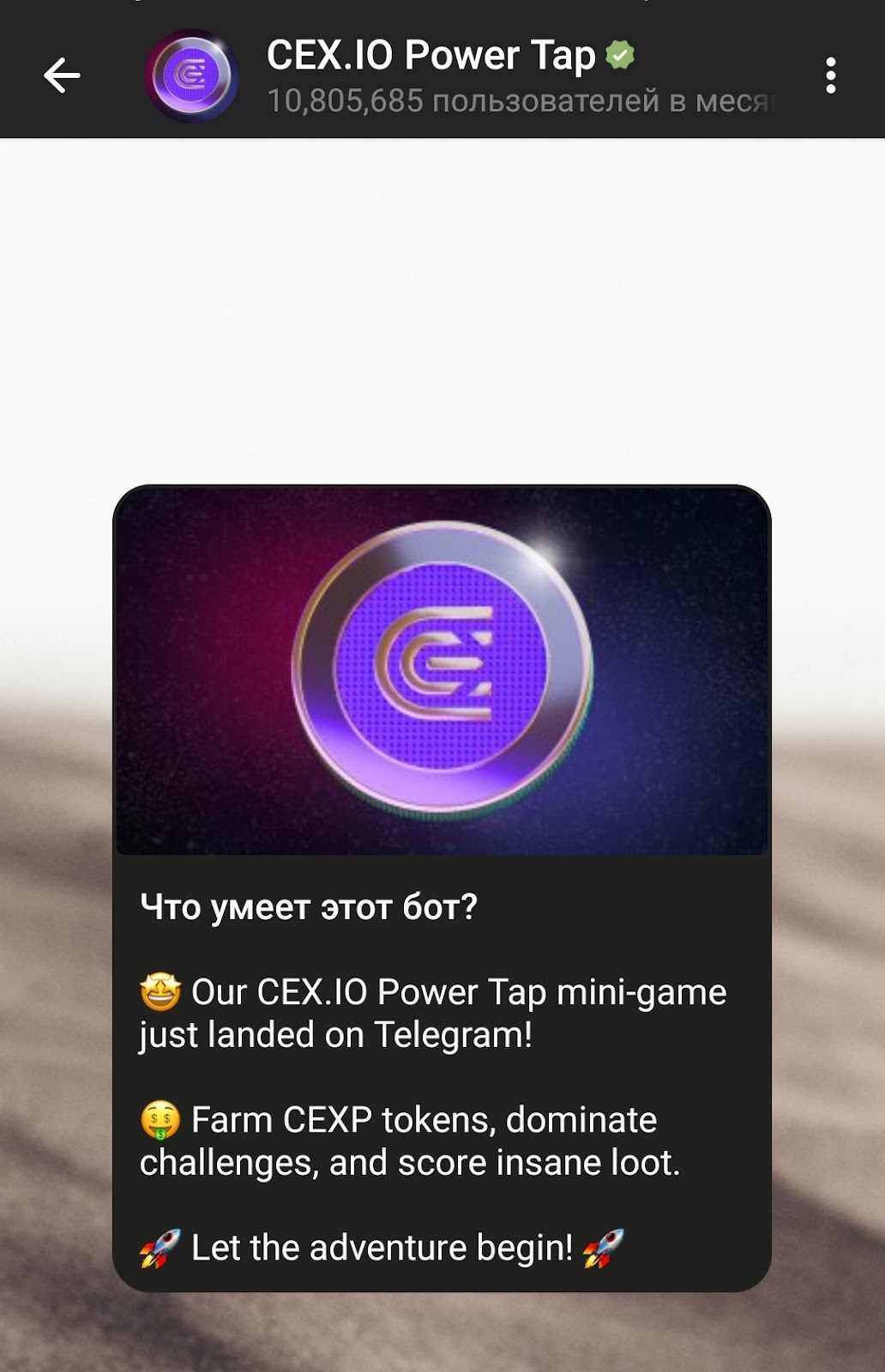 Cex Io Power Tap — приложение для майнинга от криптовалютной биржи Cex Io. Это одна из старейших крипто платформ, работает более 10 лет, находится в ТОП-80 рейтинга всех бирж. Тапалку Cex Io запустили для привлечения внимания к торговой платформе, а также для пиара собственного токена Cexp. В боте уже более 10 млн игроков, хотя майнер довольно скучный и имеет платный контент. В статье поговорим о том, как играть в Сексио, какие есть перспективы дропа, выясним, когда листинг Cexp и как вывести деньги из Cex Io Tap bot.