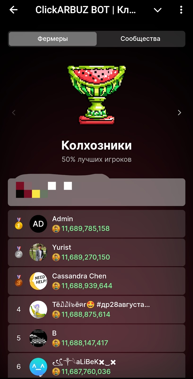 Лиги начинаются с колхозников, как видно на скриншоте, нужно собрать немало урожая, чтобы перейти на следующий уровень. Не достаточно просто иметь на балансе арбузы, их нужно конвертировать.