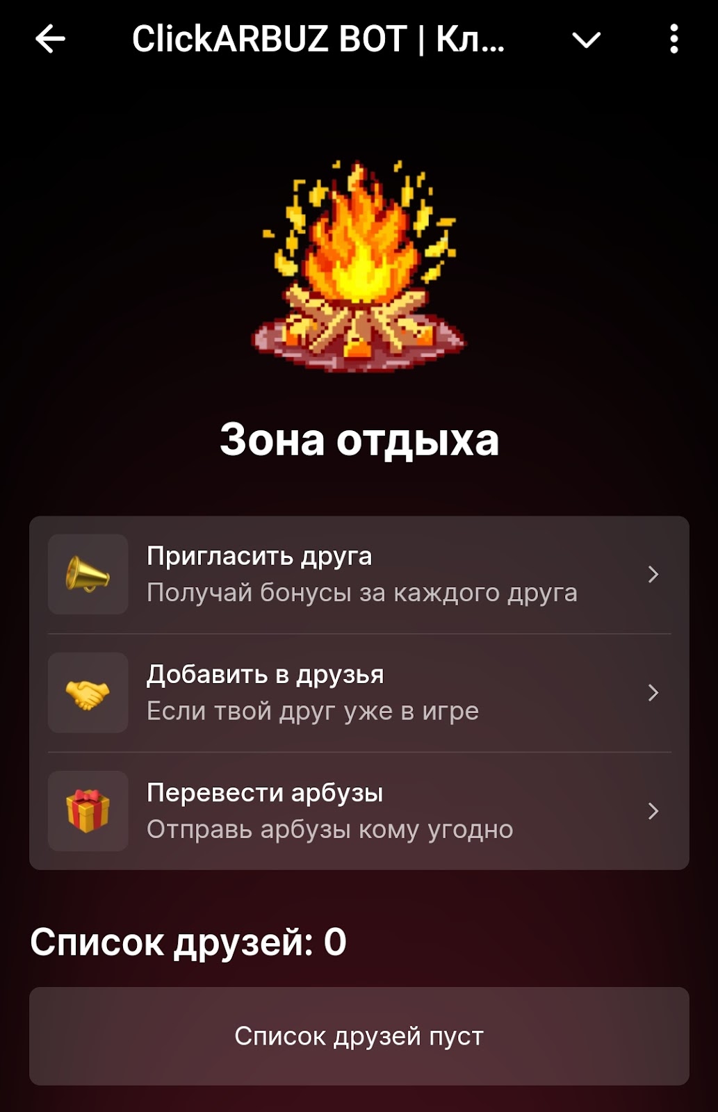 Реферальная программа КликниАрбуз бот расширена. Можно не только приглашать друзей, но и добавлять в друзья тех знакомых пользователей, которые уже есть в игре. То есть сделать их своими рефералами.