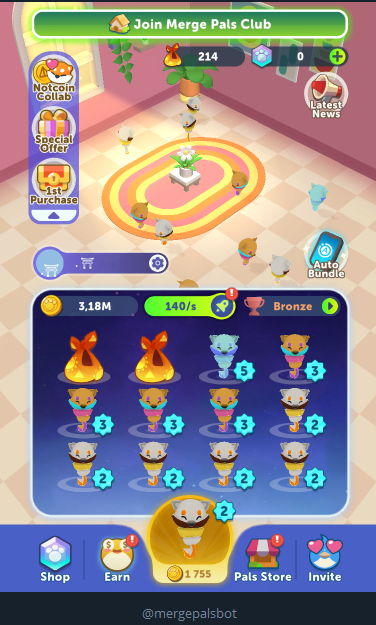 Merge Pals — бесплатная игра внутри Телеграмм. Она является новым пулом Notcoin. Пользователи в игре зарабатывают игровые монеты простыми кликами.