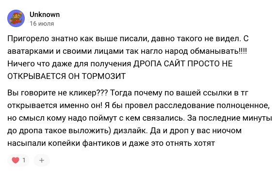 Претензии предъявляются самые разные. От ничтожного по своему объему дропа до непосредственно нечестной работы команды основателей проекта.