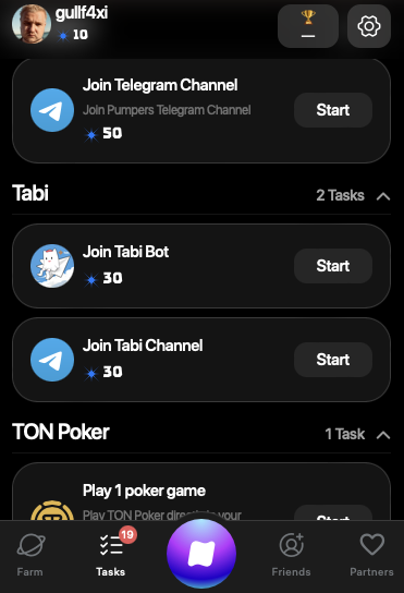 Большинство соответствующий задач довольно простые: подписаться на определенный канал, поставить лайк, сыграть в раунд в покере и т.п. За такие таски, в среднем, выплачивается от 30 до 50 монет.