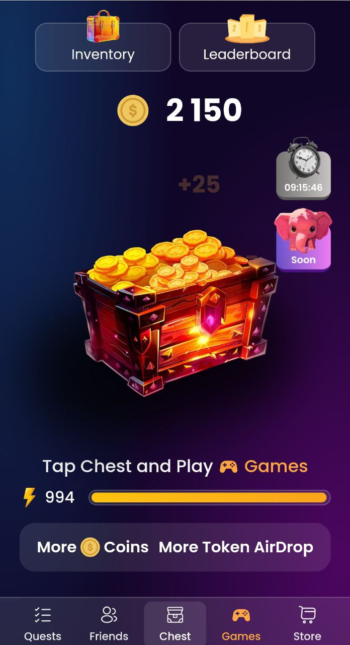 - Chest. При переходе в раздел игры Zargates Retrodrop в Телеграм требуется нажимать на изображение с сундуком. При каждом клике начисляется 25 монет.