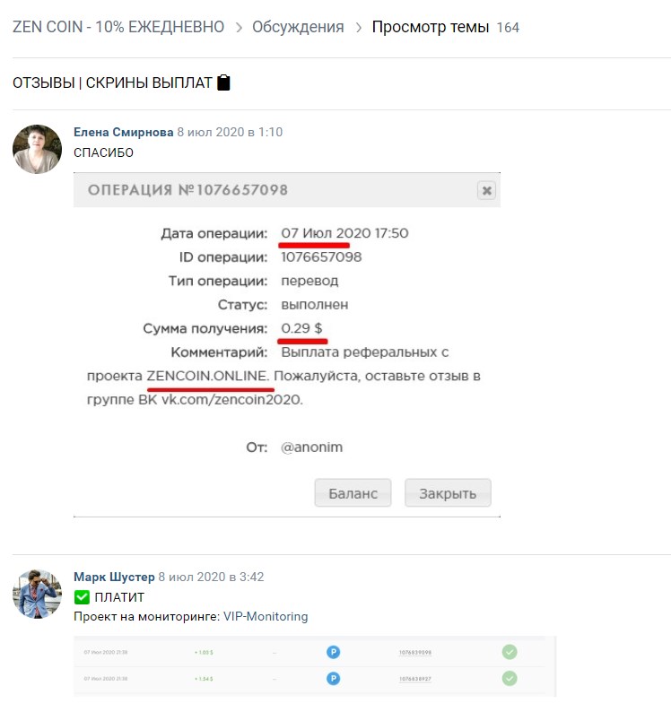Мы проанализировали отзывы о «Зен Коин», которые есть в сети. В соцсети «Вконтакте» есть только восторженные отзывы о якобы успешном выводе денег, но не написано как вывести деньги в ZenCoin.