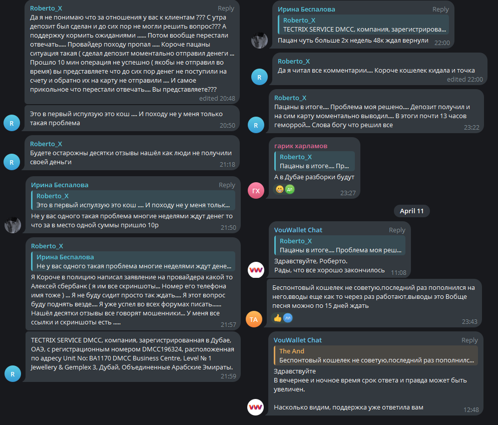 Здесь люди часто пишут отзывы на Go VouWallet Io о проблемах с пополнением/выводом и о долгих ответах службы поддержки. Но в откровенном мошенничестве компанию никто не обвиняет, люди действительно пользуются сервисом, хоть и нередко остаются недовольными. Команда проекта, в свою очередь, старается отвечать на комментарии и помогать пользователям. Но чаще всего это рекомендация написать напрямую в техподдержку, а не детали по проблеме.