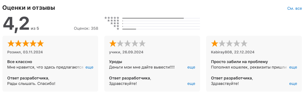 - разработчики отвечают на обратную связь, включая негативную, а плохие комментарии не удаляются;