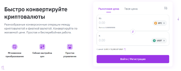 Есть раздел Swap, где размещен преобразователь криптовалюты. Там можно быстро совершить конвертацию и выбрать рыночную цену или свою цену.