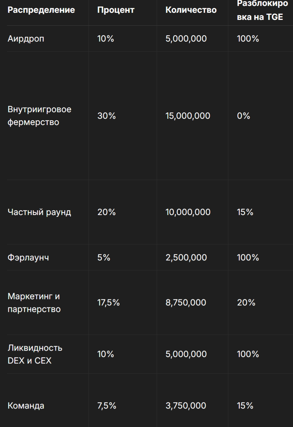 Общее количество Gh токенов — 45 миллионов. Они будут распределены следующим образом: