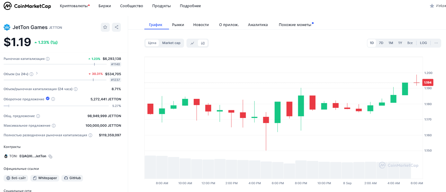 - цена на 08.09.2024 составляет 1,19$;