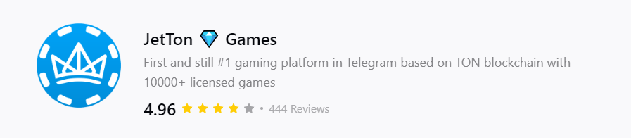 Приложение имеет высокий рейтинг, поддерживается Ton Foundation и другими крипто организациями. Своими отзывами о Jeton вы можете поделиться под обзором казино.